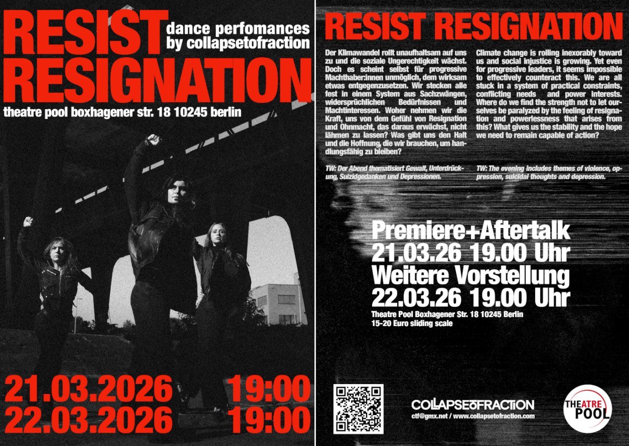 Unter dem Motto “Resist Resignation” widmet sich der Abend der Frage, wie wir den Gefühlen von Ohnmacht und Resignation begegnen können. Nicht im Sinne einfacher Antworten, sondern als gemeinsame Suche: Woher nehmen wir die Kraft, bei dem zu bleiben, was schwer auszuhalten ist?Wie können wir aus Ohnmacht, Wut und Verzweiflung etwas Gemeinsames entstehen lassen: Halt, Verbindung, vielleicht sogar Handlung?